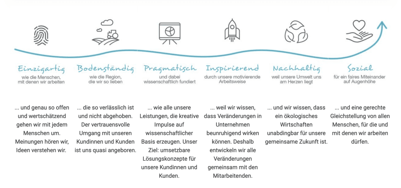 Und das zeigen auch unsere Grundwerte, die den Arbeitsstil unserer Beratung bestimmen: